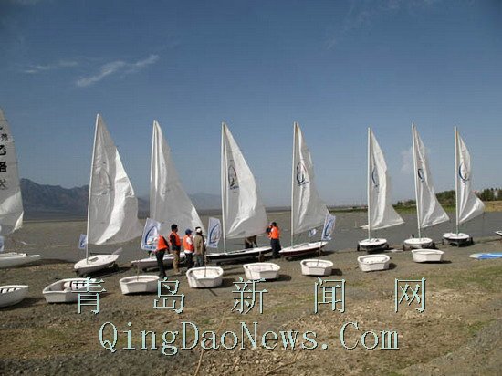 來自青島和烏魯木齊本地的帆船選手,在柴窩堡湖面上進行了帆船表演。柴窩堡湖位于烏魯木齊市區東南約45公里,湖面積約30平方公里,這里具有與“帆船之都”德國基爾相近的風力及氣候條件,常年風速均勻強勁,較適合開展帆船運動。青島帆船首次揚帆新疆,不僅改變了新疆無帆船運動的歷史,而且也給當地帶來大力開展水上帆船運動的啟發。在比賽場地,“與海聯姻”、“相約奧運”,一幅幅颯颯飛揚的彩旗,昭示著人們共同美好的心愿和祝福。