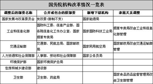 ????這次國務院改革涉及調整變動的機構共15個,正部級機構減少4個。具體內容包括:
