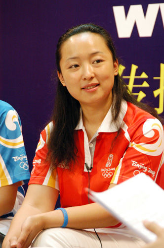 7月21日,北京奧組委志愿者部觀眾服務處黃可瀛副處長接受新華網專訪。王翰林 攝