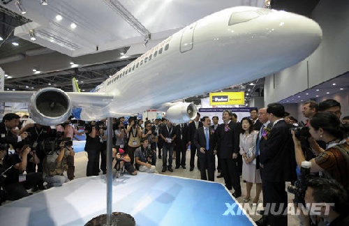 9月8日,嘉賓在航展上參觀國產(chǎn)大客機(jī)C919外形樣機(jī)。當(dāng)日,中國商用飛機(jī)有限責(zé)任公司的首個(gè)大型客機(jī)研發(fā)項(xiàng)目C919外形樣機(jī)在香港開幕的2009年亞洲國際航空展上亮相。新華社記者周磊攝 ????“2009亞洲國際航空展”8日在香港拉開帷幕,中國國產(chǎn)大客機(jī)C919模型在展會(huì)上首次閃亮登場,這也是人們期待已久的C919外形樣機(jī)首次向公眾展示。 ????由中國商用飛機(jī)有限公司(簡稱“中國商飛”)研發(fā)的C919大型客機(jī),其基本型全經(jīng)濟(jì)布局為168座,標(biāo)準(zhǔn)航程為4075公里,增大航程為 ????中國商飛上海飛機(jī)設(shè)計(jì)研究所所長郭博智表示,這次展示的模型是C919客機(jī)到目前為止最準(zhǔn)確的外形樣機(jī)。C919飛機(jī)從去年開始研制,計(jì)劃2014年底首飛,2016年取得適航證,并交付用戶。 ????據(jù)介紹,C919客機(jī)的發(fā)展目標(biāo)是,為8至10年后的民用航空市場提供安全、舒適、節(jié)能、環(huán)保、具有競爭力的中短程單通道商用運(yùn)輸機(jī)。在市場定位上,以中國國內(nèi)為切入點(diǎn),同時(shí)兼顧國外市場,提供多等級(jí)、多種航程的產(chǎn)品。(記者 王敬中 陳濟(jì)朋) |
