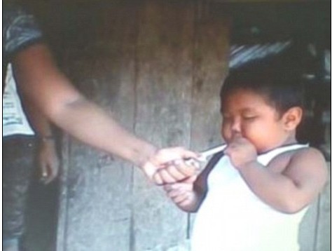 ????報道稱,名為阿爾迪-黎薩的2歲印度尼西亞男孩在其18個月的時候就第一次抽煙,煙是由他的父親給的。當記者采訪他父母的時候,他父親聳聳肩無所謂地說:“我并不擔心他的健康,他看起來身體狀況很好,如果我們不給他煙,他就會大哭大鬧。”