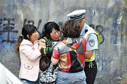 ????記者注意到,一名20多歲的削瘦男子坐在面包車北面的一堆沙土上,低著頭唉聲嘆氣,不時(shí)哽咽幾聲,口里低聲說著“都怪我,都怪我啊”。“這個(gè)男子是小男孩的父親,他坐在那里難過了好長(zhǎng)時(shí)間了。”現(xiàn)場(chǎng)一名市民告訴記者。過了一會(huì)兒,一輛出租車?yán)瓉韼酌樱渲幸幻右幌萝嚲湍_步踉蹌,哭著跑向現(xiàn)場(chǎng),跟她同行的幾名女子趕緊將她抱住,這名女子癱坐在地上,頓時(shí)哭得死去活來。