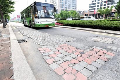 ????下午3時許,記者在香港中路與南京路附近的公交車道看到,許多路面裂縫下陷,下陷路面采用瀝青補填方式維修,一些下陷較深的路段甚至墊上了磚塊。浮山所公交車站前方近百米長的公交車道打滿磚塊補丁,公交車駛過時顛簸得非常厲害。“真該修修了,公交車經過這些路段時,乘客在車上都站不住。”剛下車的孫女士說。據介紹,這段公交車道翻修時,路基將全部按照重型車道翻修,施工期間,公交車將暫時借用外側車道通行。“規劃設計已經完成,下一步將開始施工單位的招投標,預計很快就能全面施工。”羅工程師表示,公交車道翻修后將一勞永逸,不會再出現路面塌陷等情況。 (記者 趙健鵬 攝影報道)
