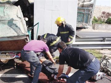 ????“濰萊高速上出車禍了,一個司機被卡在駕駛室里,消防官兵正在全力施救。”昨天早上9時許,市民苗先生撥打記者電話反映,他駕車經過濰萊高速平度云山路段時,親眼目睹了一起車禍,一輛拉水泥的貨車突然失控,撞上了路中央的隔離帶,司機猛打方向盤,導致車頭與車身分離,車頭又撞向了橋墩,破碎的駕駛室將半面橋墩裹了起來。貨車上的一名中年男子從駕駛室里甩了出來,滿頭是血,躺在路上一動不動。另一名男子被卡在駕駛室里不停地呻吟。“我看到情況危急,趕緊撥打了119和120。”苗先生說,照當時的情況看,司機可能是打盹了。 ????拖車上陣拉不動車頭 ????平度市消防大隊立即趕赴現(xiàn)場,被甩出的中年男子已經被120抬到救護車上,送到醫(yī)院救治。頂入橋墩的貨車駕駛室已嚴重變形,從里面?zhèn)鞒鲆魂囮嚿胍髀暋?/p> ????“受傷男子的右胳膊被發(fā)動機壓住,整個身子被卡住不能動彈。”消防官兵在探明情況后決定用拖車將駕駛室拖離橋墩。但由于卡得太緊,拖車連續(xù)拖了多次,駕駛室仍一動不動。原來,變形的駕駛室下部卡在了一截隔離帶上,消防隊員立刻改變計劃,先用液壓頂慢慢撐開駕駛室,然后兩名官兵爬進駕駛室,用擴張鉗將擠住受傷男子的發(fā)動機撐開,上午9時許,困在駕駛室里的中年男子終于被救出,已守候多時的醫(yī)護人員隨后將他送往醫(yī)院搶救。記者昨天下午了解到,兩名傷者仍在醫(yī)院接受治療。 趙玉勛 蘭昌云 攝影報道 |