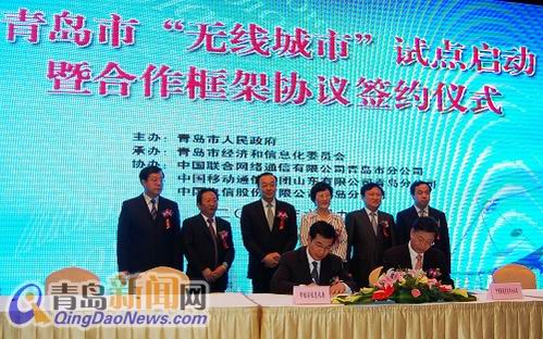 ![]() 經濟信息化委主任項陽青分別與移動、聯通、電信三大運營企業簽訂了“無線城市”建設合作框架協議