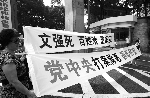 ????重慶群眾拉橫幅慶祝文強(qiáng)伏法
