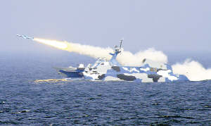 海軍東海艦隊舉行??諏嵄鴮崗椦菥?,新型導彈艇在演練中對海上目標發射反艦導彈。新華社 發