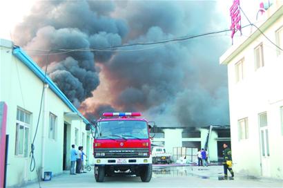????“一家廠房起火了,火勢很大。”昨天下午6時許,膠州市民王先生告訴記者,他剛才和朋友正在泉州路上的一家飯店吃飯,突然聽到飯店外有人高喊起火了。他和朋友一起從酒店出來,果然在酒店的正后方,一家企業的廠房冒起滾滾濃煙,多輛消防車呼嘯著向起火廠房趕去。記者接到線索后,立即趕往現場,在距離失火廠房2公里遠的地方時,就看到冒起30多米高的濃煙。