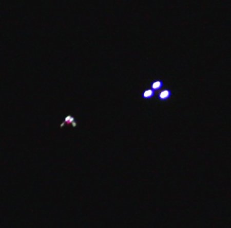 不明飛行物其中一個三點發白光,非常亮,另一個發紅光。(圖片來源:中新網)