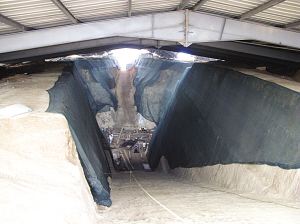 ????山頂很開闊,一道圍墻把在門前,門旁是一面巨大的考古分析圖表,上面是幾幅空中鳥瞰照片。考古人員說,“這是專為此次考古動用飛艇拍攝的。”據介紹,墓園面積達25萬平方米,面積之大,等級之高,在南博考古史上也少見。最近的一座大棚的進口只有一人多高,大棚里是一個很深的坑道,坡度至少有40度。負責此次考古的南博考古所副所長、領隊李則斌隊長讓大家抓住一旁的繩索,一步步地向下滑去。這時候,一位考古隊員用手指著對面墓道身處的一個橫著的巨大條石說,“遙感圖片上的黑頂位置就在這,去年初發(fā)生的盜墓案,4名盜墓者就是死在這里。”