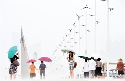 ????隨后記者又來到棧橋、海底世界等前海西部景區(qū)看到,小雨擋不住游客的興致,特別是孩子們,拋開雨傘赤腳在沙灘上游玩。記者在天泰體育場看到,場內(nèi)停放著上百輛旅游大巴。“游客太多了,我們在天泰體育場開辟了臨時停車場,這兩天光這里一天就要接待三四百輛大巴。”青島海底世界負責人告訴記者,昨日海底世界接待游客數(shù)近兩萬人次。孫靜芳 于小陽 攝影報道