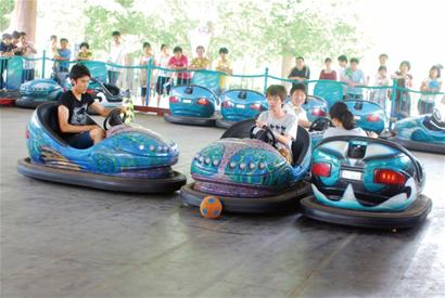 ????游客在中山公園歡動世界開碰碰車。