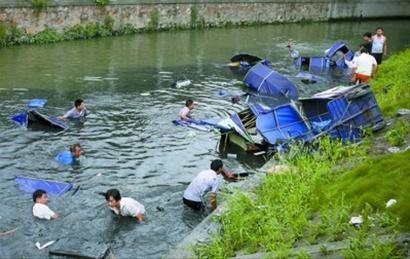 ????原來這些三輪車主為避免車被收繳,竟然相繼將車推進河里,然后自己也跳了進去。河底的黑色淤泥全都翻了上來,惡臭陣陣,讓周圍人不禁捂住了鼻子。