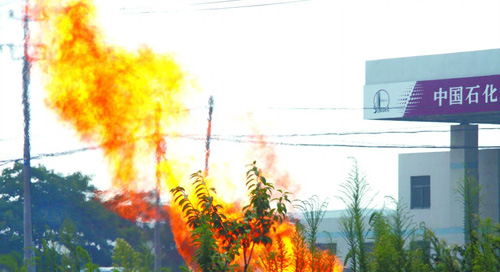 ????7月29日上午10時(shí)許,膠南西外環(huán)路發(fā)生驚險(xiǎn)一幕,一根直徑250毫米的天然氣管道突然發(fā)生泄漏并起火,大火躥起約20米高,而事發(fā)地點(diǎn)不到60米處就有一個(gè)加油站。民警緊急疏散了周圍群眾,消防隊(duì)員用了20分鐘把明火撲滅,經(jīng)過一個(gè)小時(shí)的奮戰(zhàn),險(xiǎn)情被化解,事故導(dǎo)致周邊多個(gè)小區(qū)“斷氣”。