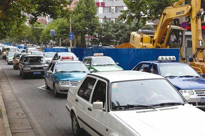 ????昨日上午記者在延安三路走訪時(shí)看到,施工已全面展開,藍(lán)色圍擋將半幅道路圍了起來,大型挖掘機(jī)已將路面挖開。由于延安三路地處繁華地段,過往車輛非常多,交通一直較為擁擠。此外,記者還注意到,由于附近停車位緊張,不少公司職員將私家車停放在馬路旁邊,占據(jù)了一個(gè)車道,導(dǎo)致原本就不是很暢通的交通更加擁堵,公交車、私家車只能慢慢地一步步往前挪。而在小湛山路與延安三路交匯處,不少自海信立交橋開過來的私家車,由于不知道路已開始施工,原來的雙向道已變成單向道,行至路口才發(fā)現(xiàn)時(shí)已經(jīng)晚了,只好慢慢地調(diào)頭,本已壓力頗大的單向道被堵成一個(gè)疙瘩。據(jù)在附近工作的一位市民介紹,昨日上午過來上班時(shí)就被堵在延安三路與香港西路路口,沒辦法他只好提前從202路公交車下來,步行400米到單位。