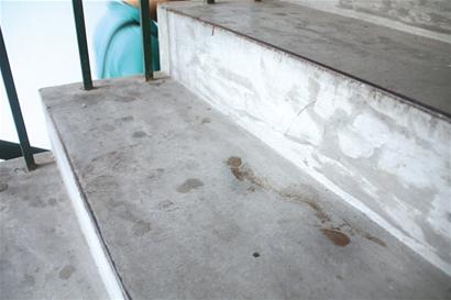 ????隨后,記者來到了人民一路53號附近的居民區(qū),在該小區(qū)5號樓門口,許多市民正圍在樓口,表情有些緊張?!把妇褪窃谖覀儤巧习l(fā)生的,你看看,樓梯上滿是血跡。”市民王大媽害怕地說。她告訴記者,發(fā)生慘劇的301室最近兩天夫妻倆一直在吵鬧,昨天上午特別厲害。出事的301室已經(jīng)被民警封鎖,樓梯上血跡斑斑。繞到案發(fā)樓座背后,記者看到301室的防盜窗上滿是血跡,在墻壁上,記者還看到一條讓人驚悚的血痕,從三樓一直延伸到二樓。