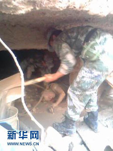 8月8日,蘭州軍區某集團軍防化團官兵正在現場實施救援。新華社發 (王彥軍 攝)