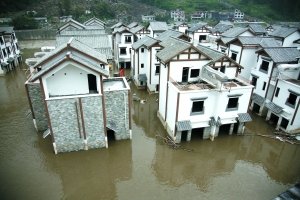 ????泥石流截斷岷江,即將交付的映秀新城被淹,面臨二次重建;省官員表示,重建規劃沒問題