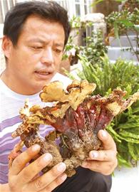 ????馬先生的這株靈芝,個頭不是太大,菌傘呈橢圓形,直徑足有七八厘米,表面呈現(xiàn)紅褐色,菌蓋上還有一圈圈環(huán)狀棱紋,看上去還很新鮮。“這是其中最小的一株,最大的直徑足有二三十厘米。”馬先生說,28日那天他冒著綿綿細雨,背著包就上了浮山,在半山腰處的一棵大槐樹下,他發(fā)現(xiàn)了滿地的“蘑菇”,都長在裸露在地面的樹根上,大大小小的“蘑菇”足有二三十株。記者咨詢了中國海洋大學(xué)食品科學(xué)與工程學(xué)院的江曉路教授,看過記者拍攝的照片之后表示,這確實是一株靈芝,屬于野生赤芝,一般生長在陰暗潮濕的腐木或樹根上,有較高的藥用價值,新鮮的可以煮水喝,也可以曬干后泡酒喝或碾成粉末食用。江教授提醒,雨后長出不少菌類,有些是有毒的,市民最好不要輕易食用。 記者 吳帥 攝影報道