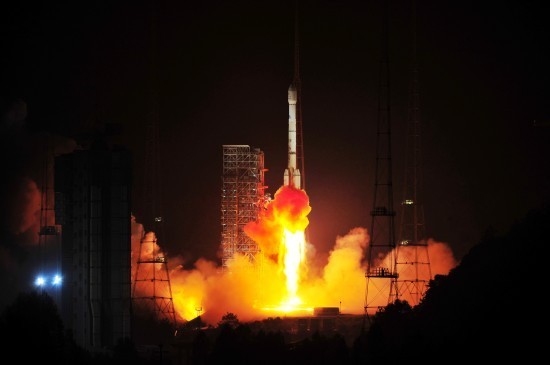 搭載著“鑫諾六號”通信廣播衛(wèi)星的“長征三號乙”運載火箭在西昌衛(wèi)星發(fā)射中心點火升空。