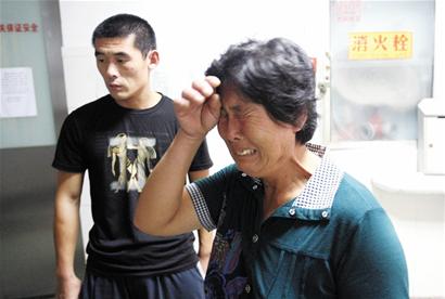 琪琪的家屬談起孩子的傷情大哭起來 記者 王建亮 攝