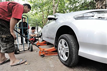 ????早報訊 中秋節(jié)本是合家團(tuán)圓的高興日子,但是家住水清溝二小區(qū)的劉先生看著自己的愛車卻怎么也高興不起來。昨天早上7時左右,提著大包小包的劉先生準(zhǔn)備跟妻子孩子一起出門走親戚,沒想到來到愛車跟前時,卻發(fā)現(xiàn)停在樓下的愛車的四個輪胎都被人扎癟了。據(jù)前來更換車胎的修車工介紹,這個小區(qū)一個月內(nèi)已經(jīng)有8輛車遭了黑手。