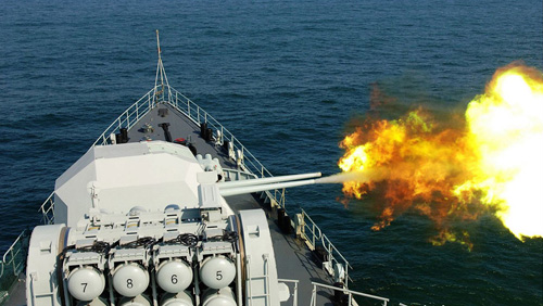 ?中國(guó)軍艦火炮對(duì)海上目標(biāo)實(shí)彈射擊 王松岐攝