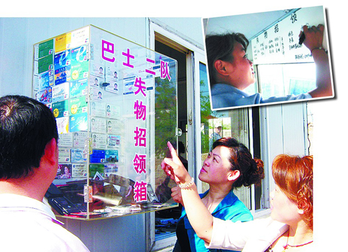 ????公交集團(tuán)算是撿到丟失財(cái)物的“大戶”,公交集團(tuán)巴士二隊(duì)的吳女士說,按照集團(tuán)統(tǒng)一的處理辦法,一般能聯(lián)系上失主的,直接讓失主來領(lǐng)取。“暫時(shí)聯(lián)系不上的,我們就在報(bào)紙上登失物招領(lǐng),失主看到后也可以到路隊(duì)領(lǐng)。”吳女士說,他們路隊(duì)的公交車上也會(huì)掛一些失物招領(lǐng)的牌子,乘客坐車時(shí)也可以看到。如果一直找不到失主,“我們有個(gè)很大的失物招領(lǐng)箱,找不到失主的就只能先在里面放著。”吳女士說。