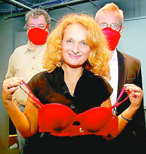 ????博德納在經(jīng)歷了1986年切爾諾貝利核泄漏事故以后,萌發(fā)了設(shè)計(jì)“防毒胸罩”的想法。博德納現(xiàn)定居于美國(guó)芝加哥。她宣稱,一旦恐怖分子發(fā)動(dòng)生化攻擊,自己發(fā)明的這款胸罩同樣會(huì)有用武之地。博德納表示,在遇到火災(zāi)、塵暴或豬流感等意外事件時(shí),“防毒胸罩”也可以派上用場(chǎng)。憑借這款“防毒胸罩”,博德納曾獲得2009年“搞笑諾貝爾獎(jiǎng)”的公共健康獎(jiǎng)。