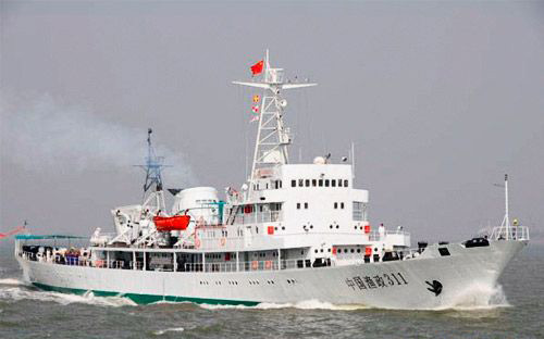 資料圖:中國漁政311巡邏船正在執(zhí)行任務(wù)