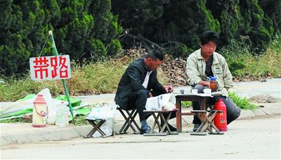 ????“怎么樣,沒證過不去吧?給我30元錢,我帶你過去……”記者從垃圾中轉站后門退出后,一名男青年拿著帶路的牌子迎了上來,記者看到,瑞昌路入口處停著一輛掛著“帶路”牌子的小型面包車,幾名男青年蹲在車旁,每當有車開來,他們便上前招攬生意。“里面上上下下我都熟悉,我手里有通行證,就是車牌號跟你的不一樣,進入后你們開快點,沒問題。”這名男青年稱,在站里辦張通行證不但要200元錢,而且要單位出具介紹信,還要等上個三五天才能拿到。“這張通行證也不知道能用多久,路口再過幾個月一通車就是廢紙一張,要是一次兩次從這個路口過,你還不如找我。”這名男青年主動將價錢降到20元,并表示下次再找他,還可以半價。