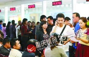 ????下午4時,記者來到渝北區房交所,大廳里已是水泄不通。工作人員告訴記者,過戶的號已經發到600號以外,“簡直比房交會還要火爆。”