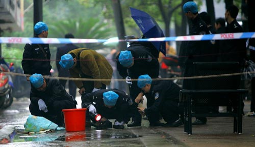 長沙發(fā)生槍擊案一人身亡 警方現(xiàn)場調查(組圖)