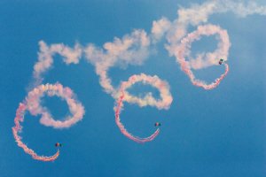 中國空軍跳傘運動大隊做定點跳傘表演時,在天上畫出3個e字