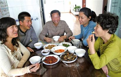 午飯時間,其樂融融的任鐵英一家談天說地。