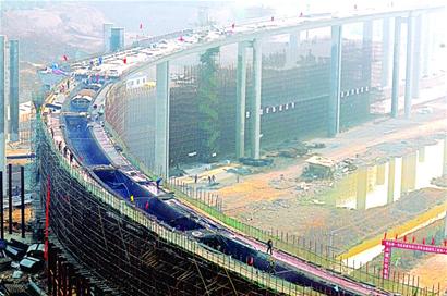 據海灣大橋青島端接線工程項目辦總工張修亭介紹,經過一年的緊張建設,目前,海灣大橋青島端接線工程進展順利,已顯出巨龍形態,橋體自起點到李村河、張村河交會點除跨鐵路處和勝利橋處已實現北半幅貫通,南半幅還差最后三聯,預計于本月中旬完成貫通。貫通長度3公里,占一期工程總長的40%。(崔武)