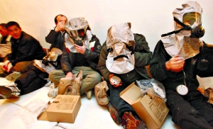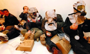 12月20日,居民們在延坪島防空洞內戴上防毒面具。韓軍方官員稱,韓國軍隊在延坪島的實彈射擊訓練從當地時間14時30分開始,于16時04分結束。為了防范朝鮮回擊,韓國陸、海、空軍的戰斗力量目前仍保持戒備狀態。新華社發