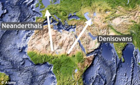 這些人類早期的祖先曾在30萬到40萬年前就已經從非洲遷移出去,遷移出去的人隨后很快的分成兩部分。其中一部分進化成穴居人即現在多數歐洲人的祖先,另一部分遷移到了地球的東邊,隨即演化成了Denisovans人