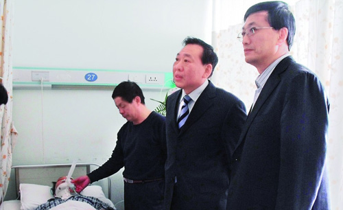 ?副市長王修林和市衛(wèi)生局局長曹勇到醫(yī)院看望受傷的劉醫(yī)生。