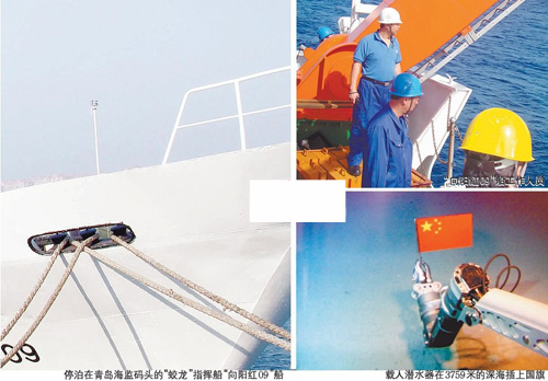 ????陳崇明說,根據當時載人潛水器海試任務的需要,冷日輝作為母船上的42名成員之一,2010年5月25日從青島海監碼頭隨“向陽紅09”船出發。船上的每名成員心里都明白,這一出發少則在大洋上要待2個月,或更長時間。由于這次載人潛水器執行的是3000米級海試任務,如果按照這個級別,“向陽紅09”必定要到我國位于南海的深海區 ,意味著隨身所帶的手機在遠離大陸的情況下是沒有信號的,沒有信號也就意味著和家人終斷聯系數日甚至更長時間。