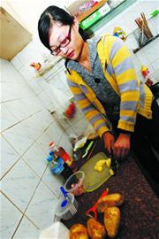????為了省錢,除了簡單的早餐外,李偉紅的午餐和晚餐都是自己做,這樣每天花在三餐上的錢僅為10元。