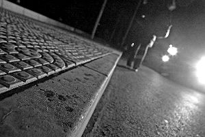 昨晚,順義牛欄山昌金路路口西南側,事發現場仍可見血跡。本報記者秦斌 攝
