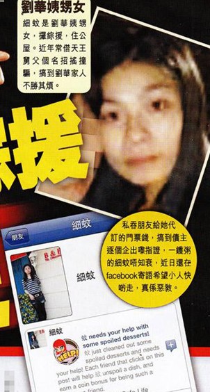 據知三年前劉德華在香港舉行16場個唱時,“細蚊”已以代訂劉德華個唱門票為名,廣收票款,但收錢后卻向當事人聲稱門票售罄,但又不肯退款兼玩失蹤,導致十多人“中招”,所涉金額接近8萬元。知情者說:“‘細蚊’每次見到新認識的朋友,會主動說她是劉德華的外甥女,又拿她和劉德華一家人的合影給別人看。這次一幫受害人把錢給了‘細蚊’買劉德華的票,但一直沒拿到票,才知道可能被騙了。”