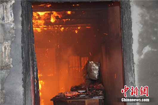 14日23點(diǎn)52分,三門消防大隊(duì)接到報(bào)警稱,在縣城關(guān)發(fā)生大火,火勢(shì)很大。三門消防立即出動(dòng)4車28人于十分鐘左右趕到現(xiàn)場。到現(xiàn)場后,木架結(jié)構(gòu)的二層老民房在大火中猛烈燃燒,紅彤彤的火光照亮了半邊天,現(xiàn)場還不時(shí)發(fā)出“啪啪”的聲音。
