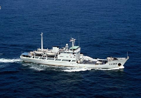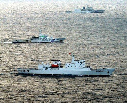 2010年11月20日上午,中國漁政船“漁政310”和 “漁政201”先后逼近釣魚島海域,日本海上保安廳迅速出動巡視船進行近距離跟蹤。圖為在“漁政310”號與日本巡視船展開對峙。