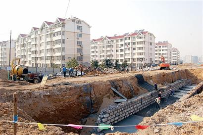 ????記者沿著勁松一路繼續往北走,穿過合肥路,來到四季景園小區附近看到,其西側是大片大片的小土堆,緊鄰小區西邊外墻的土堆已進駐了大型挖掘機開始施工。