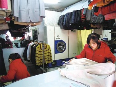 這家洗衣店的張老板坦言,由于之前定價較低,所以今年店內的洗衣價格普遍上調,像最便宜的襯衣、牛仔褲都從原先的7元/件漲到9元/件,短款羽絨服從之前20元/件漲到25元/件,中長款從30元/件漲到35元/件,長款都要在40元/件以上,羊絨外套從30元/件漲到35元/件,成套西服則從15元漲到20元?!八械南匆碌甓荚跐q價,只是幅度、范圍和方式不同罷了?!睆埨习逭f。