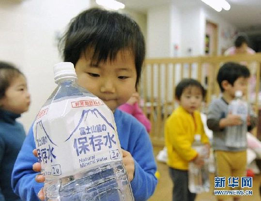 資料圖片:3月24日,在日本東京一個(gè)幼兒園,小朋友分到了瓶裝水。新華社/路透