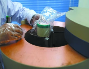 樣品制作好后,就送到實(shí)驗(yàn)室檢測(cè)。盒子不僅密封好,外面還要用袋子套上。工作人員解釋說(shuō):“這主要是防止樣品污染儀器探頭。”