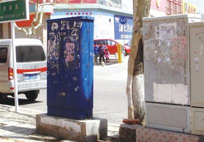 在書院路上,檢查組步行檢查了不到300米的路面,結(jié)果發(fā)現(xiàn)多個配電箱、通信設(shè)備箱等外表貼滿了小廣告,箱體非常臟。在書院路與青峰路路口處,有三個箱體矗立在人行道上,三個箱體無一例外臟亂不堪,外邊被貼滿了小廣告。從現(xiàn)場情況看,箱體外的小廣告被清理過了,但由于清理不徹底,一個個箱體都變成了大花臉,看上去更加刺眼。在昨天的檢查中,檢查組發(fā)現(xiàn),各種電力、通信、有線電視等的箱體普遍存在長時間無人擦洗的情況,并提醒有關(guān)部門及時處理。